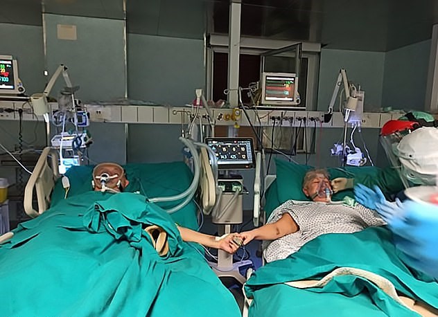 A senior couple suffering from COVID-19 were seen holding their hands in the celebration of their golden wedding anniversary while in the intensive care unit.