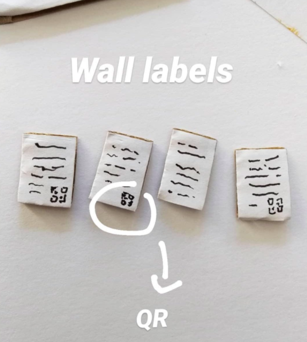 The couple started by making basic gallery accessories like small benches and wall labels for the art that came with QR code.