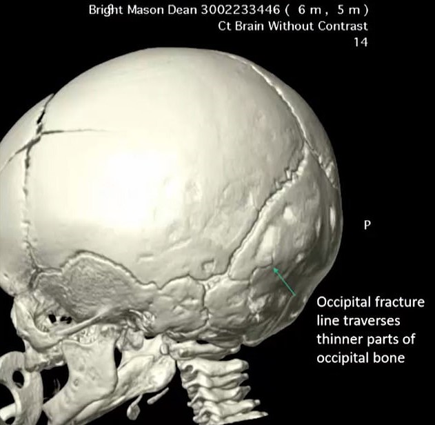 Five days after the incident, a doctor working with the CAP team sent a form to CPS supervisor Niesha Edwards, concluding: “While the reported fall could account for one of the skull fractures, it does not explain the other fracture or the extent of Mason’s intracranial bleeding.