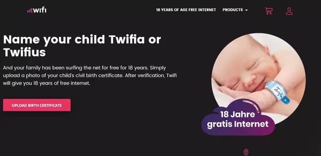 The bizarre deal is a part of an offer made by a start-up Swiss company called Twifi. As the internet provider explained on their website, they’re offering free Wi-Fi for 18 years to parents who name their children Twifus or Twifia.