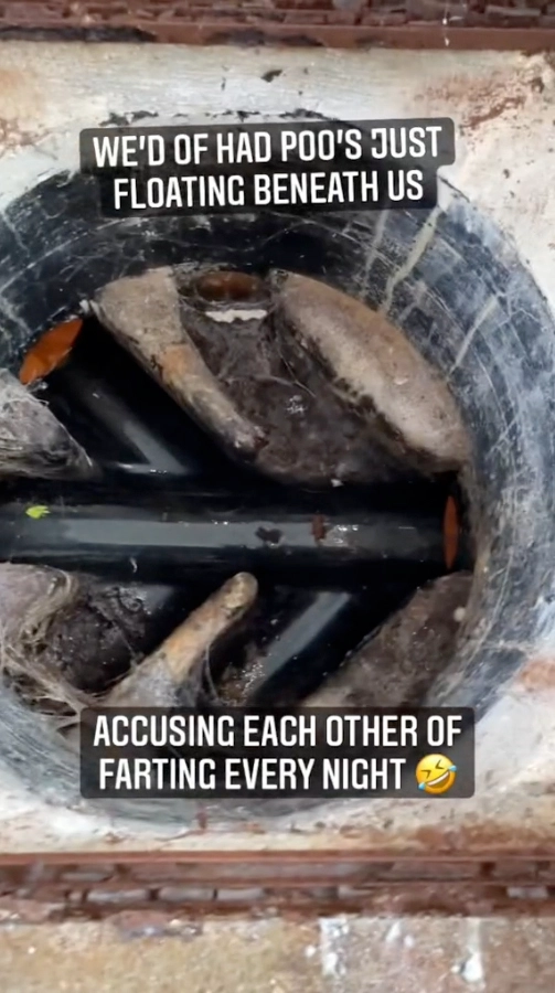 “Oh my goodness,” the mom can be heard saying in the video as she took a peek inside the drainage system, or a ‘poo pipe’ as she described it.