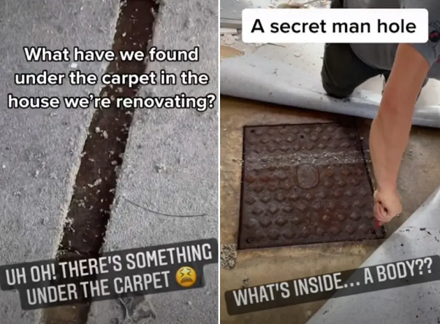 The wife filmed as they looked under their bedroom carpet only to discover a ‘secret manhole.’