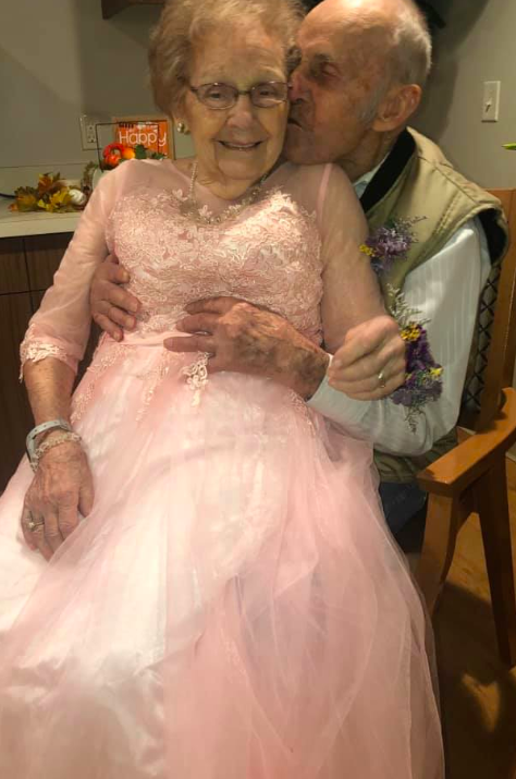 On October 11, Shirley relived her youthful wedding once again when Ardis assisted Shirley getting dressed up in a pink dress, completed with a corsage and the sparkly wedding set she had never let go from her left hand since 1947.