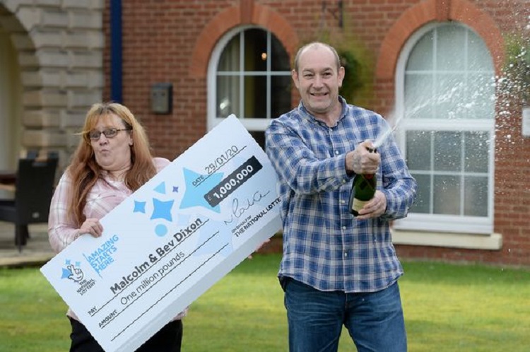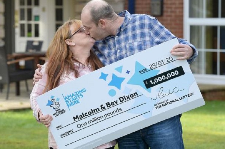 Malcolm and Bev Dixon, from Leigh in Greater Manchester, first thought they had won only £1,000($1,300) when they got five matching numbers plus the bonus ball during the Lotto draw.