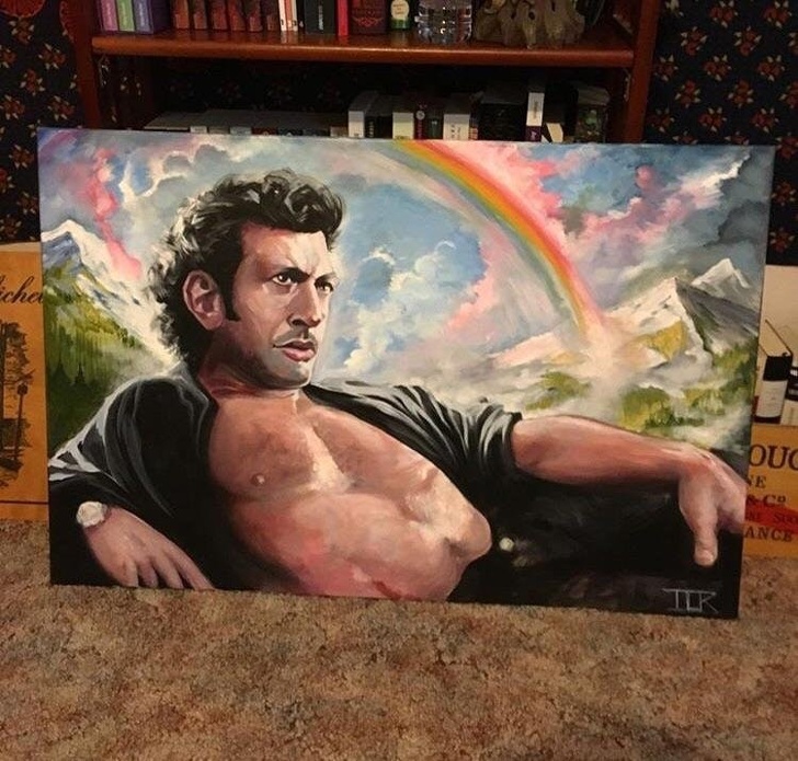 2. “On our first date, I jokingly told my boyfriend I loved Jeff Goldblum in Jurassic Park so much, I wished I had a giant painting of him. 4 months later on my birthday, he gave me this painting.”