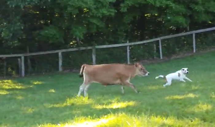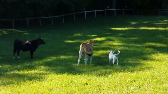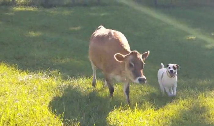 Bucket the rescued cow and Colton the rescued Bulldog became inseparable ever since they met for the first time.