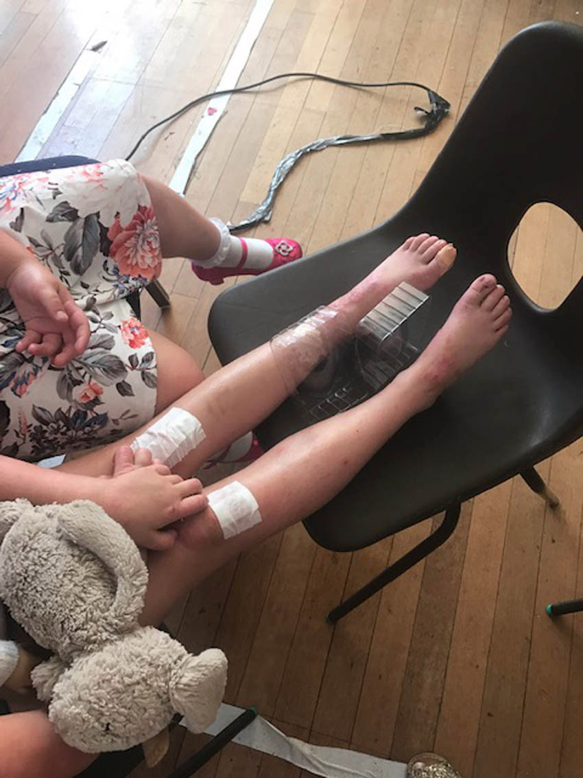The parents had to cover her hands in clingfilm to stop her scratching at home.