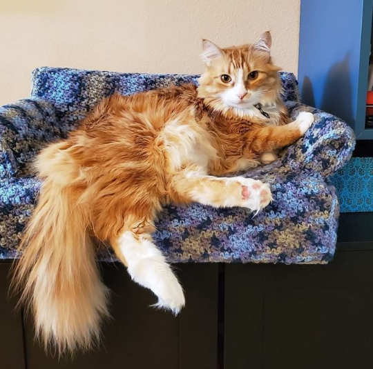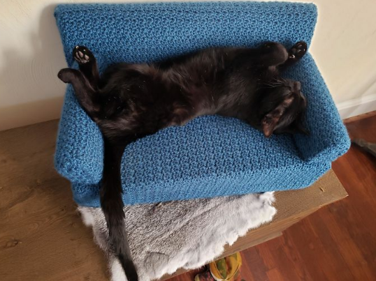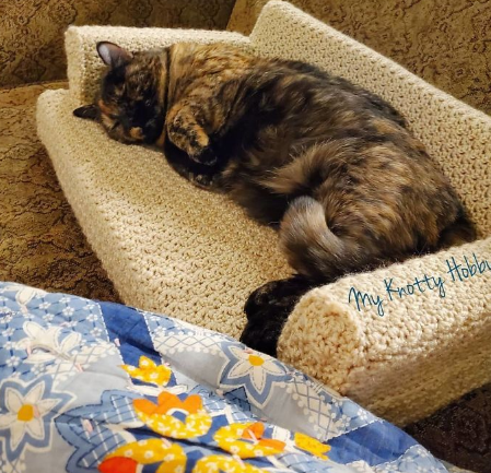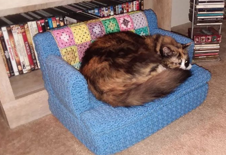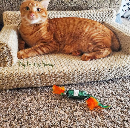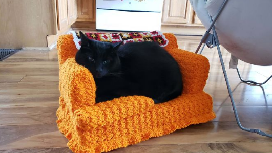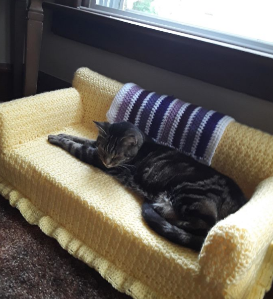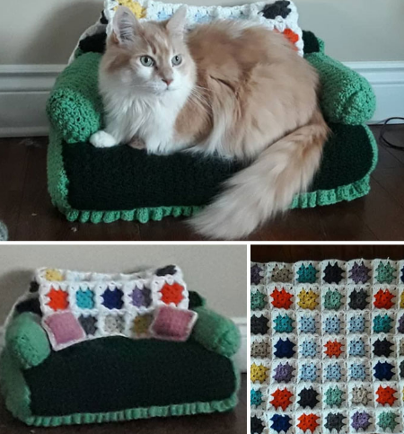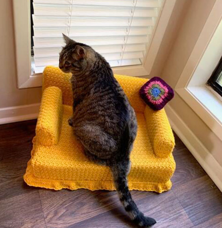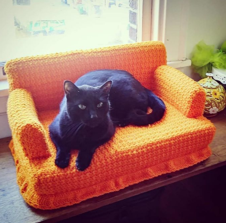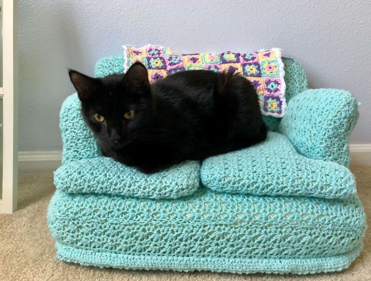 If you like crocheting or are looking for a new thing to try out, you may want to try out making a bright and beautiful crochet couch for your cat.