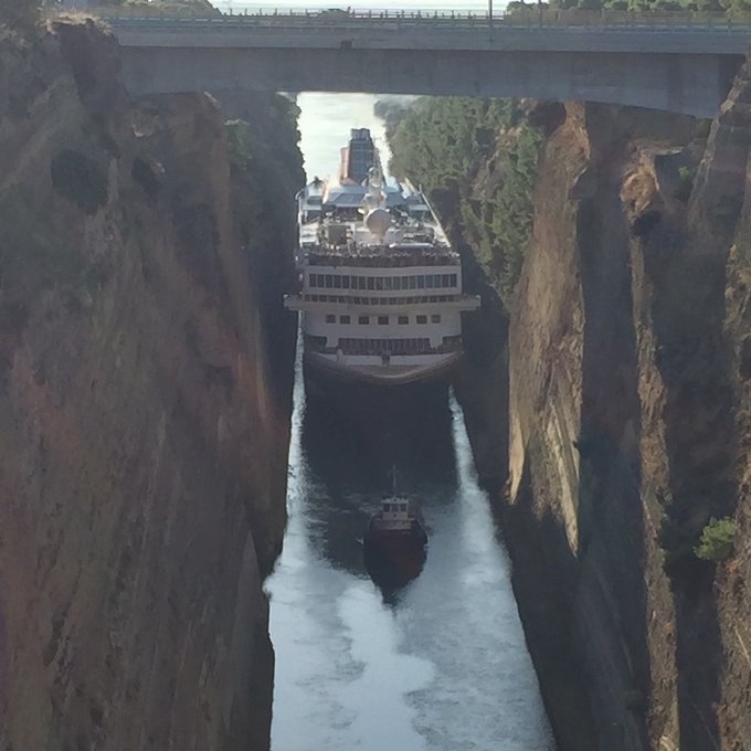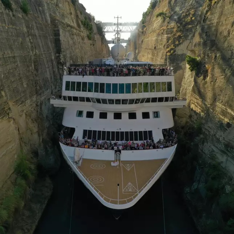 The Corinth Canal is located in Greece and measures 24 meters in width at the narrowest point. Meanwhile, the ship belonging to Fred. Olsen Cruise Lines measures a staggering 22.5 meters in width.