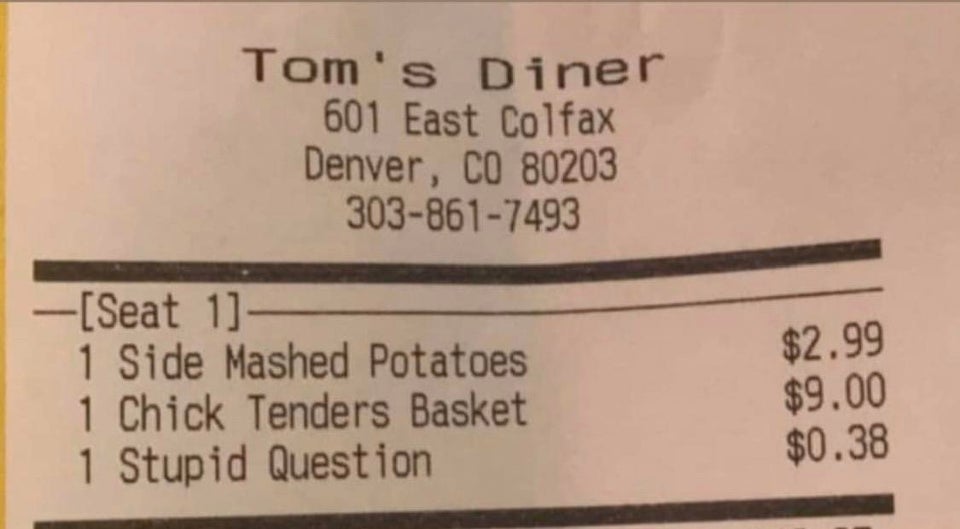 A customer at Tom’s Diner in Denver, Colorado was charged an extra 38 cents for asking a ‘stupid question’.