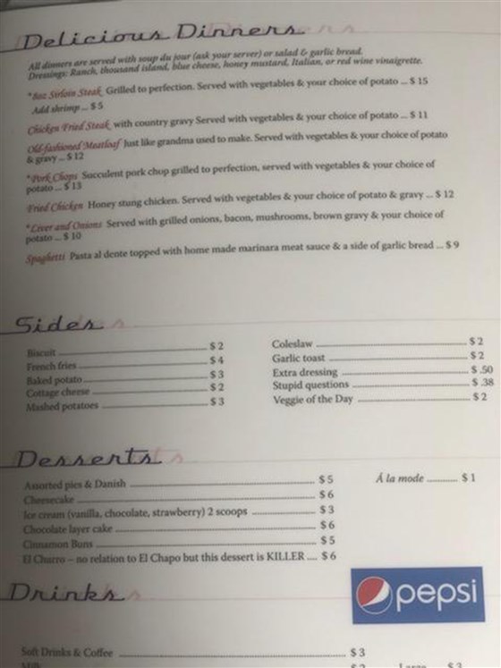 “Stupid Question” is actually listed on Tom’s Diner’s side menu and a number of people have been charged for asking a ‘Stupid Question’.