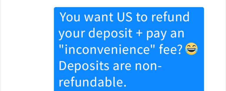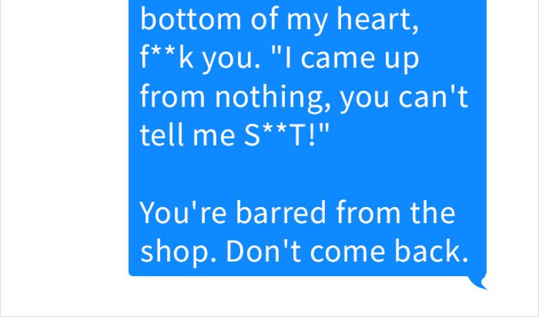 He sent a text message to the shop, saying: “I would like to cancel my appointment and receive my deposit back, as well as a 10% inconvenience fee.”
