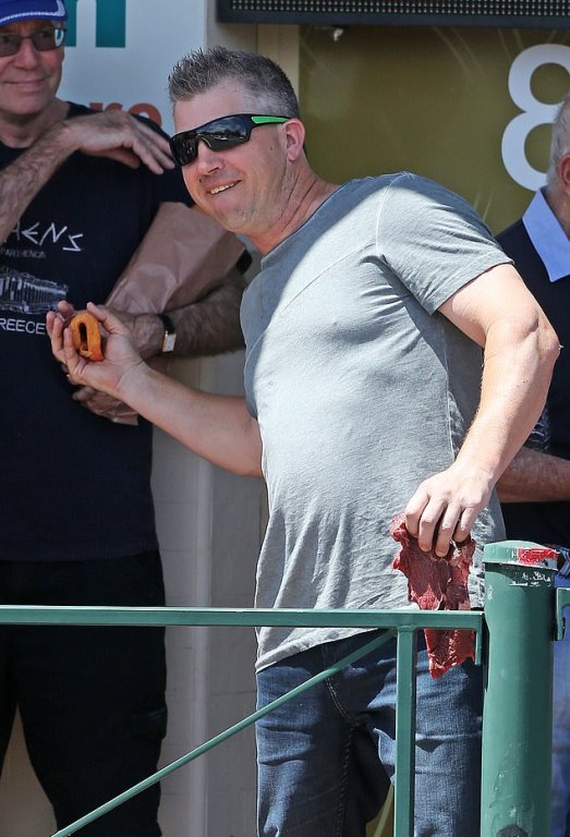 Despite the hot temperatures, the shop’s supporters fought back and one man even threw a steak at the protesters.