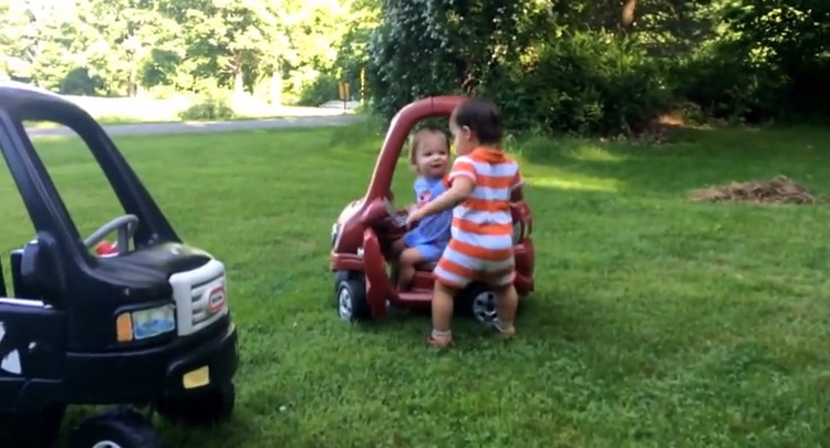 It must even be tougher still for twins simply because they’re the same age and at the same level of emotional development. And in this video, one dad taped his twins as they adorably baby-argued over who gets to ride in the toy car.