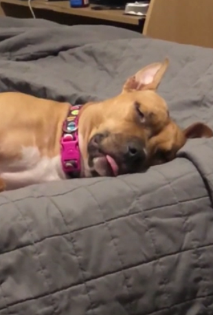 The dog who was captured while sleeping has the energy of five dogs together. It is fun to see how he keeps reacting and behaving through his dream.