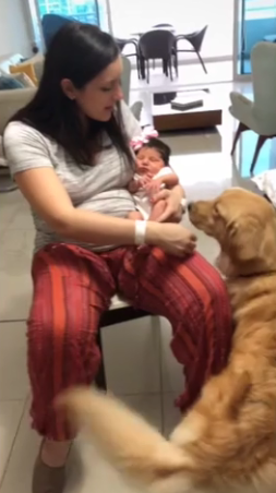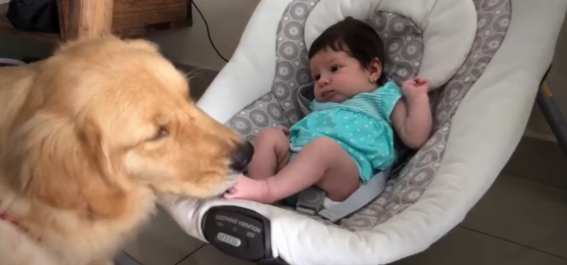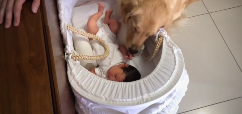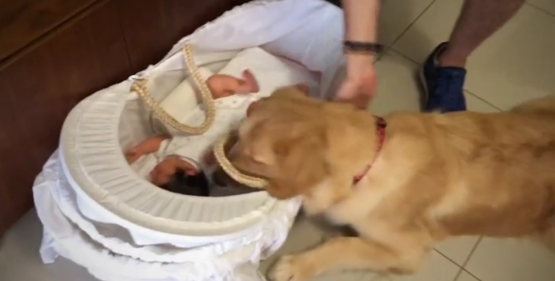 Recently, a Golden Retriever who was named Birra met a newborn baby, and it is adorable to see both of them together.