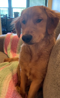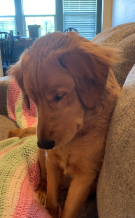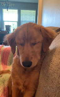 Penny, the puppy who had a very hard working day, can barely open his eyes because he is so sleepy.