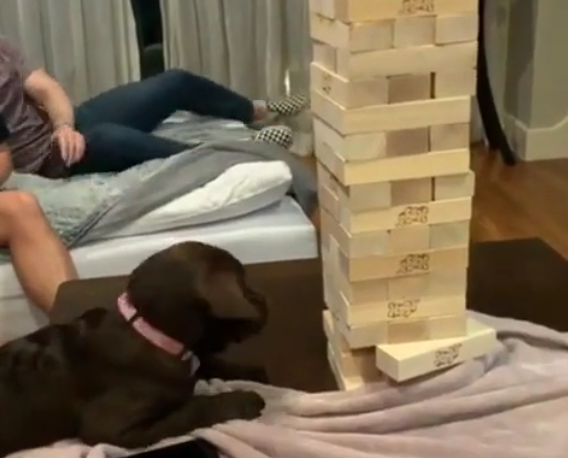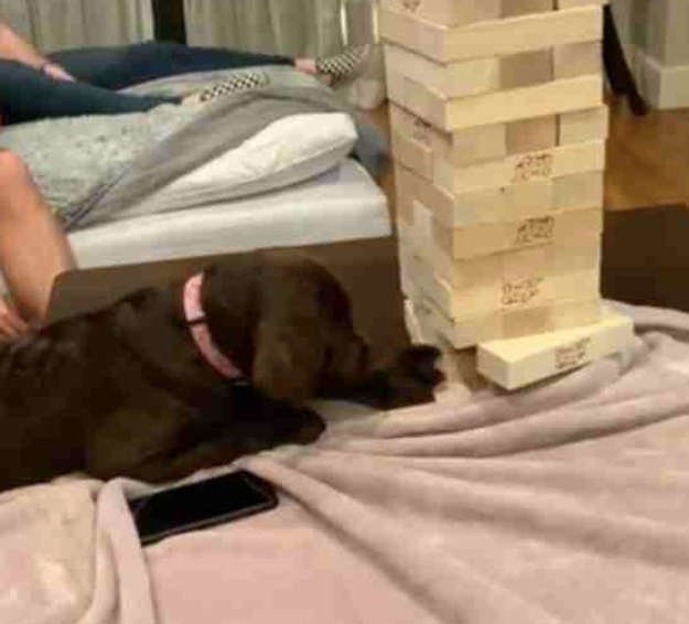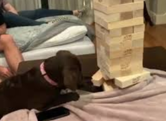 Agapiou kept watching Remy while she was charmed with the Jenga as it was a major play at that moment. Soon after seeing Remy get so excited with Jenga, Agapiou took out her phone and started recorded the pup.