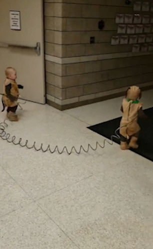 From what the footage indicates, while one of the twins was wearing dog ears, the other had a tail in order to mimic the toy from the Disney film.