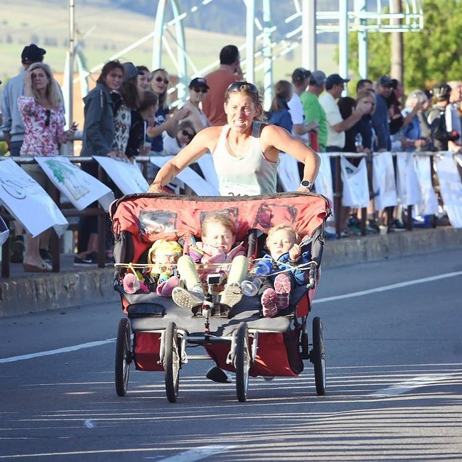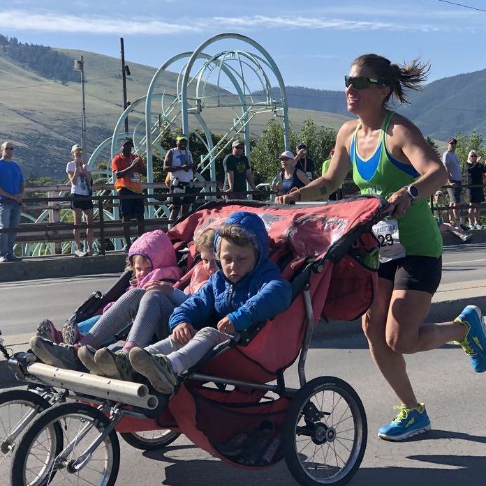 She returned with the even larger goal this year: to set the Guinness World Record for the fastest full marathon while pushing three kids at the Missoula Marathon.