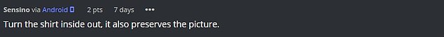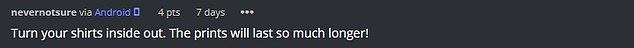 Others simply advised the dad to turn his shirts inside out next time. “You should always turn shirts with prints inside out to make them last longer,” one wrote.