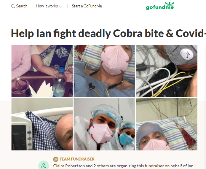 “Ian was, at the time, already battling a second bout of Covid-19, having survived an earlier attack in March, when the snake bite took matters to a whole new level of severity,” the page reads.