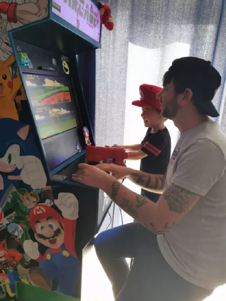 Proving that being on lockdown is not the end of the world, one genius dad built a full-sized retro arcade game station using materials he scrounged up from home.