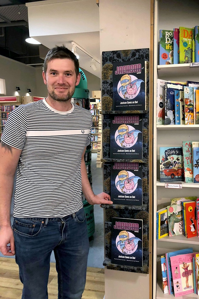 He decided to start writing a series of books, in which his son is a superhero. Site inspector Darren made Jackson into a fictional superhero and penned tales about their adventures together.