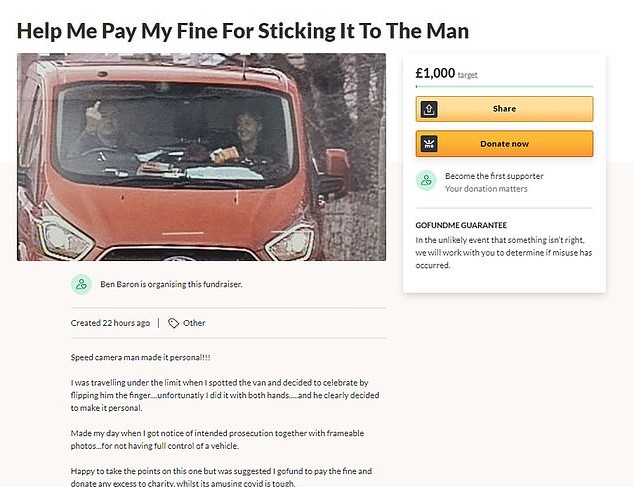“I think, looking on the internet, the maximum fine is £1,000 for that offence. I decided to launch a GoFundMe.