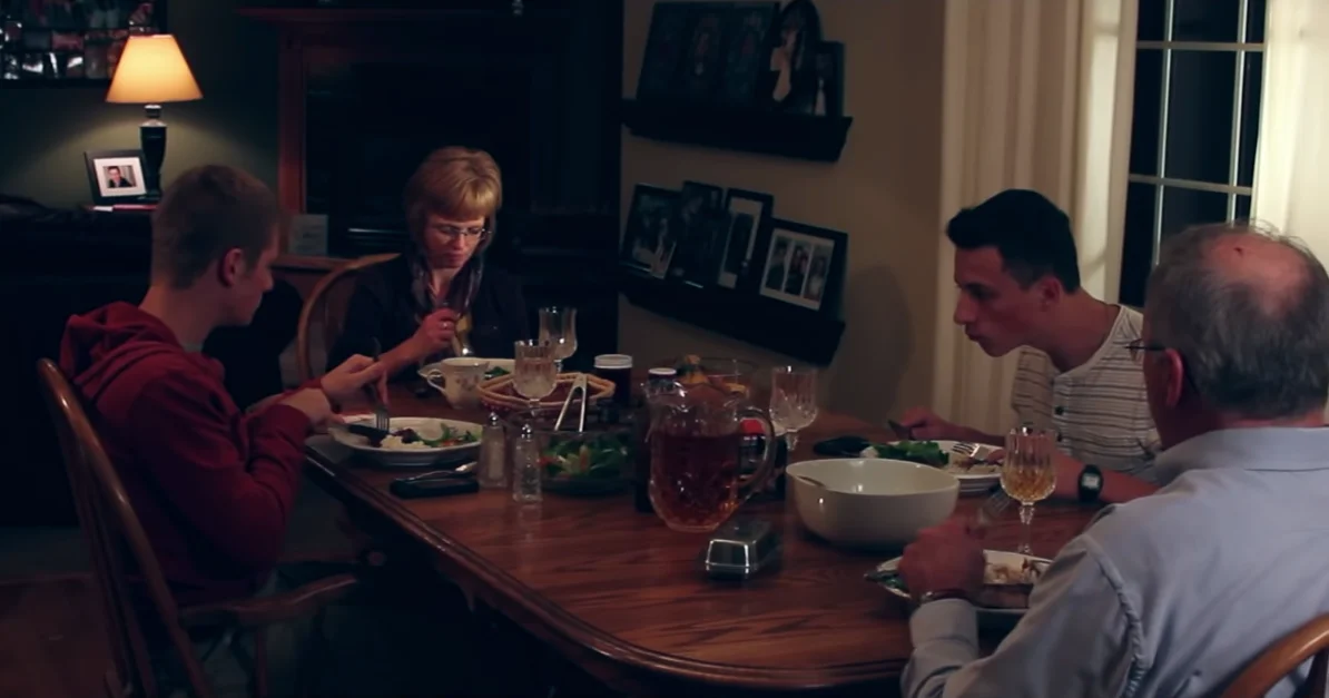 The video which now has over 18,500,000 views starts with: “Don’t text at the table kiddos!” At the start of the clip, a family can be seen silently having dinner, not speaking among themselves.