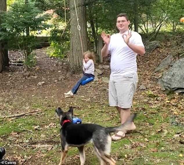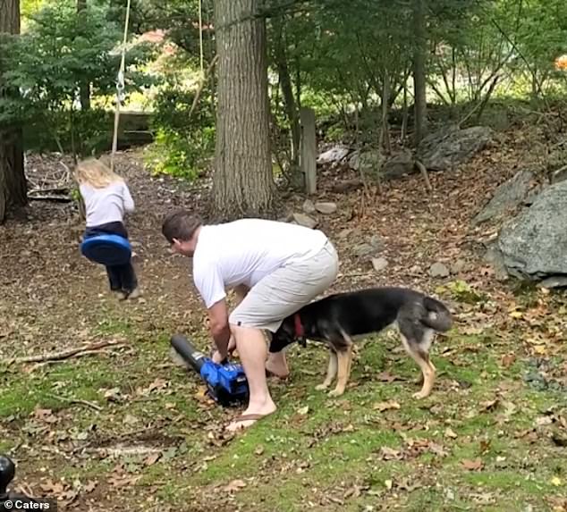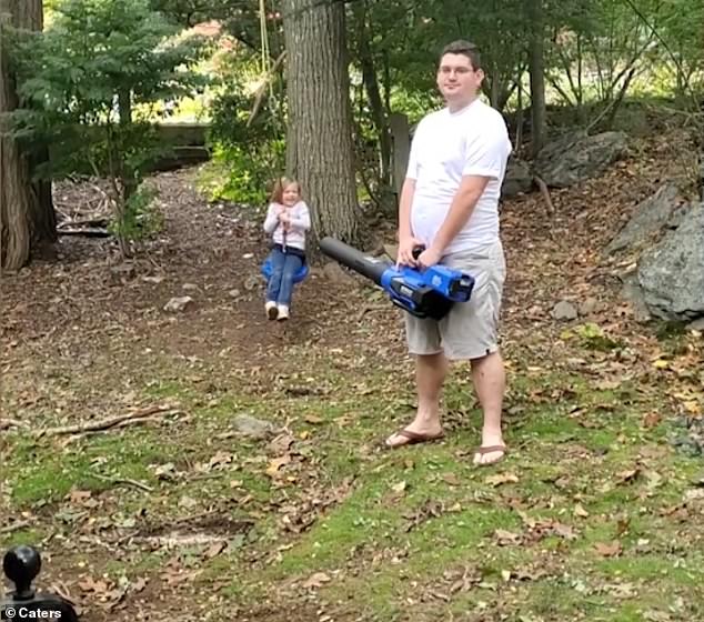 The 24-year-old father was clearing autumnal leaves from his garden using a leaf blower. His five-year-old daughter Hayden came to use the rope swing and asked her father to push her.