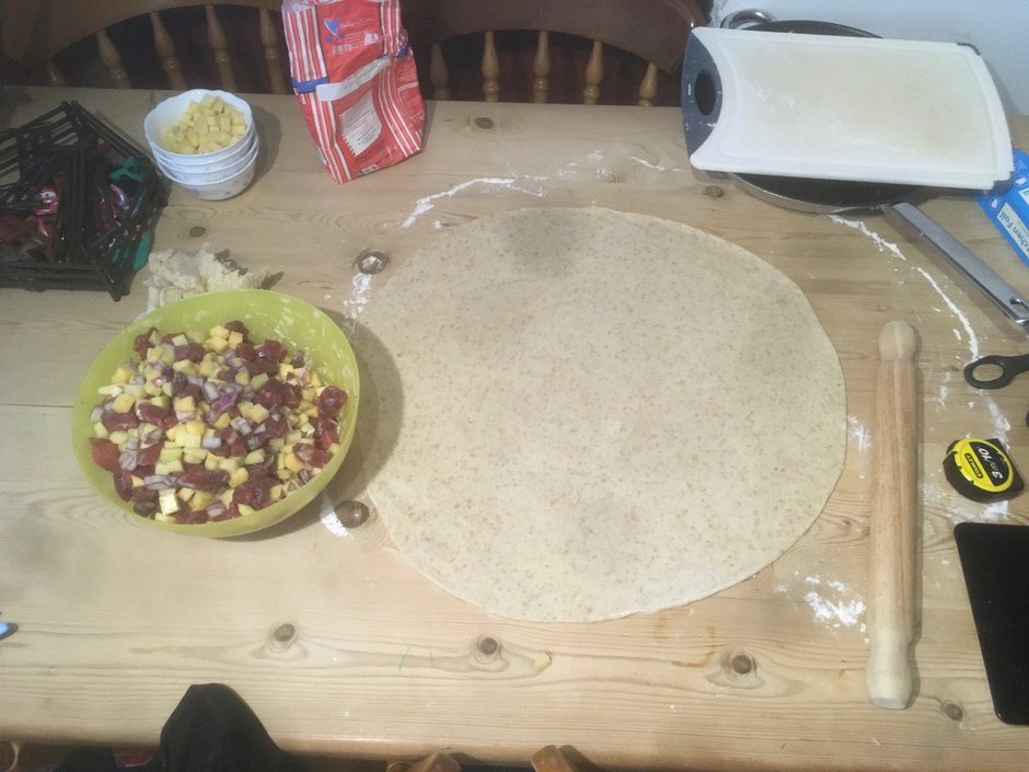 His wife was bothered because her husband made it better than her. “My wife was annoyed because it was nicer than hers! But I had to get her to do the crimping,” he said. I think it’s about 7,000 calories – I tried to work that out from the ingredients.”