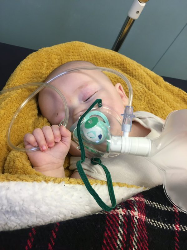 The baby boy, who has a defected trachea, was rushed to hospital and will need surgery.
