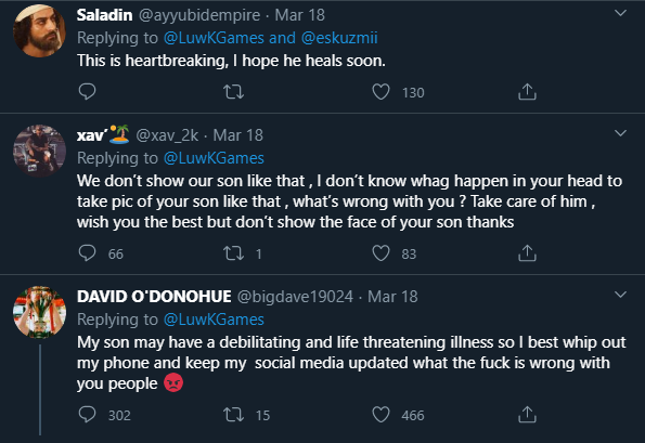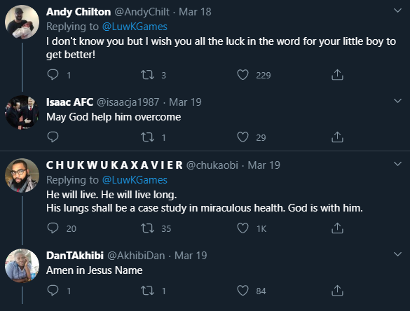 Twitter users reached out to the dad, with one commenting: “I’m so sorry to hear this. I hope he has a speedy recovery.”