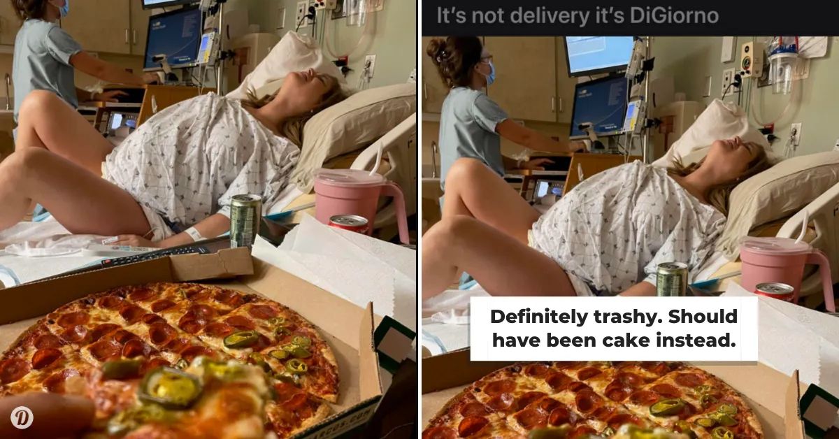 Taking their time out to comment on the post, one viewer mentioned, ‘This is what it looks like when you’re casually eating an entire pizza when your SO is in the middle of giving birth to your child.”