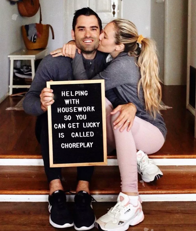 This is not the first time a cheeky dad has been attacked online for helping for awards. One mom from San Diego shared a photo of her husband holding a sign that read: “Helping out with housework so you can get lucky is called choreplay.”