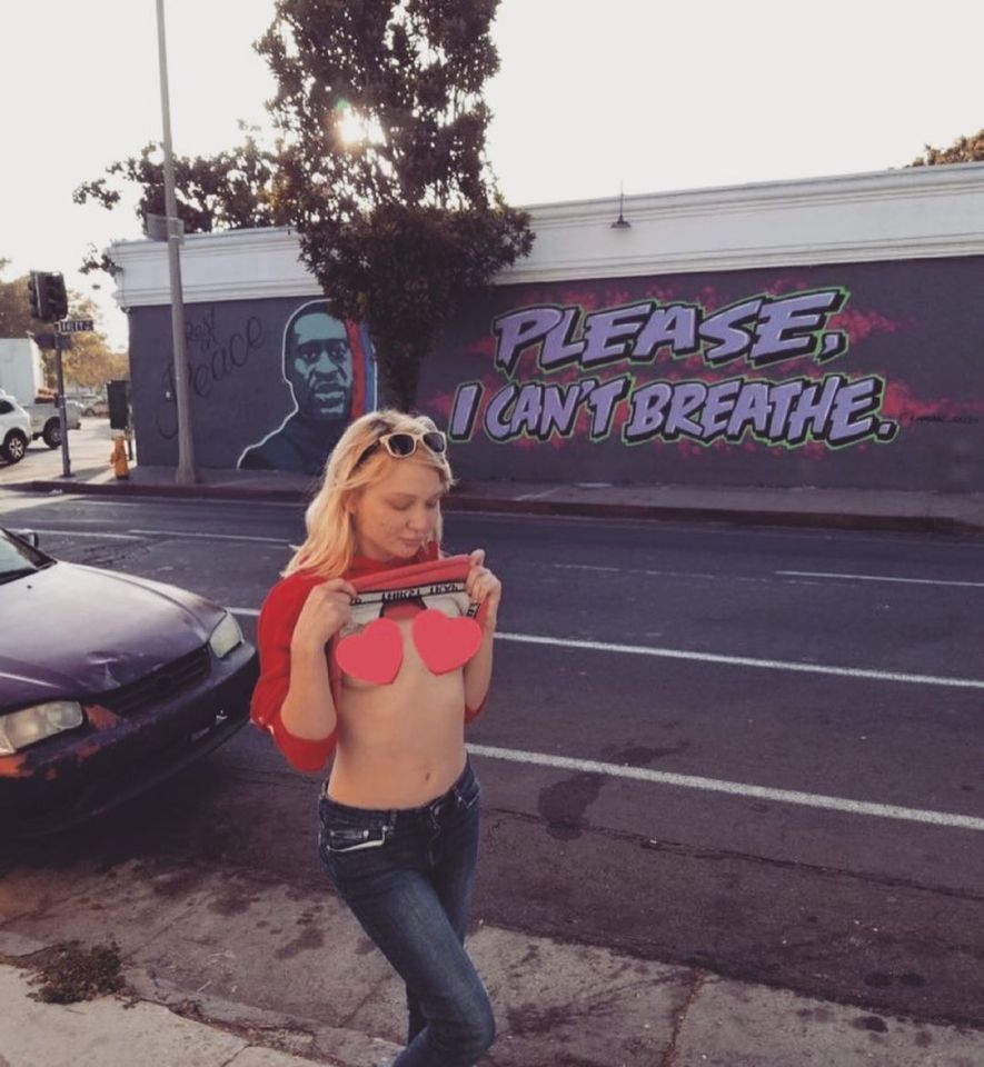 Dakota went viral after posting up an image of herself, which has now been deleted, showing her to be flashing her breasts, right next to a mural of George Floyd that is known to be a tribute to the Black man who passed away tragically.
