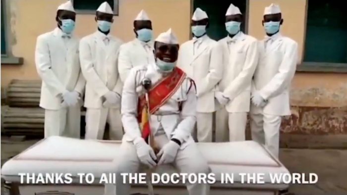 Ghana’s popular dancing pallbearers have shared a heartfelt message thanking healthcare workers around their world for their hard work and sacrifices fighting Covid-19.