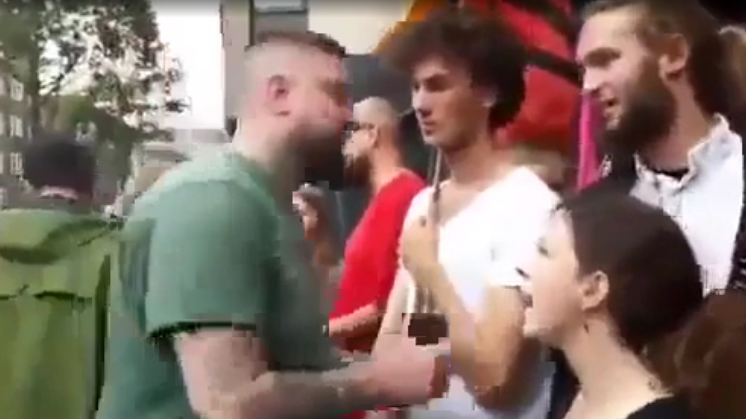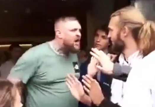 Breaking the human wall to keep people out of the burger shop, the man entered as a protestor kept pulling him back by pulling his hand. It did not work and he made it in the shop. After that, he cursed and screamed at the protestors in Danish for a while before he went in to get his burger.