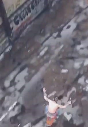 A video of his stunt quickly went viral on social media but internet users were not sure whether to vomit or laugh when the man showed off his bum piercings before the jump.