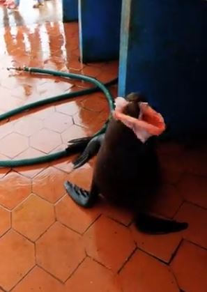 Here is a video of this adorable sea lion who is in the fisher’s market and is eagerly waiting for his meal.