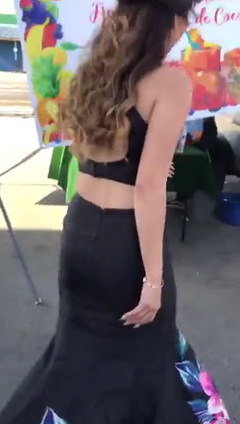 She stopped at the workplace on her way to prom, and they took a video of how she surprised her father.