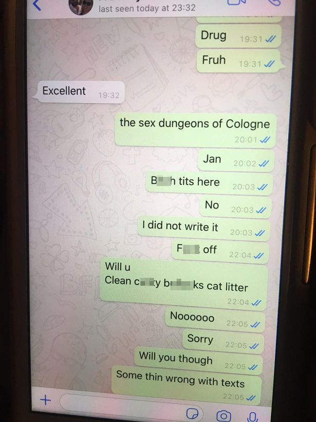When the mother typed the word ‘Hi’, it was autocorrected to ‘F*** off”. She ended up texting things like “the s*x dungeons of Cologne”, “B**** t**s here”, “f*** off” and “will you clean c***y b******s cat litter.”