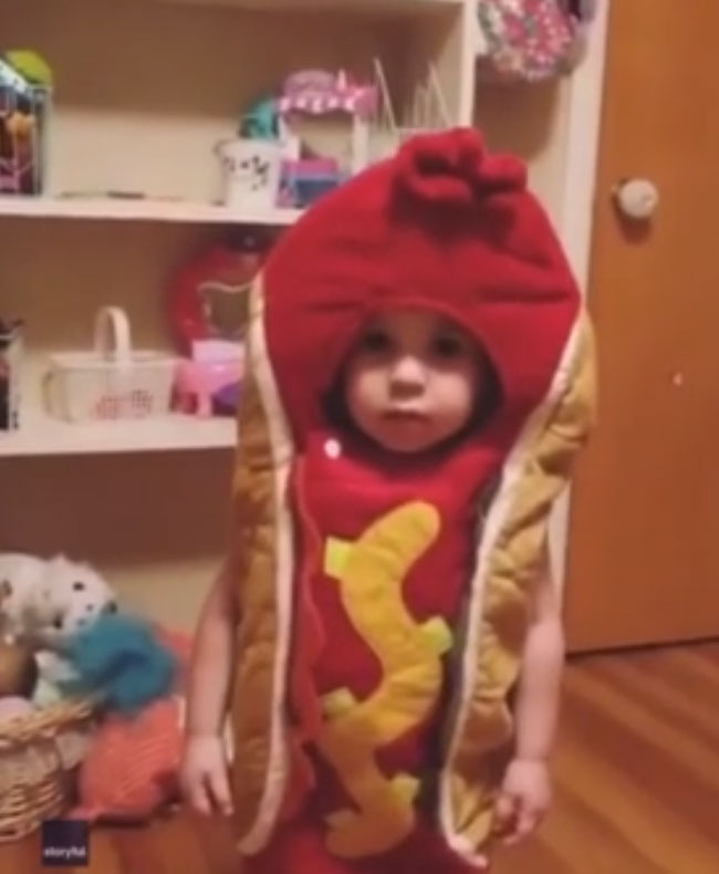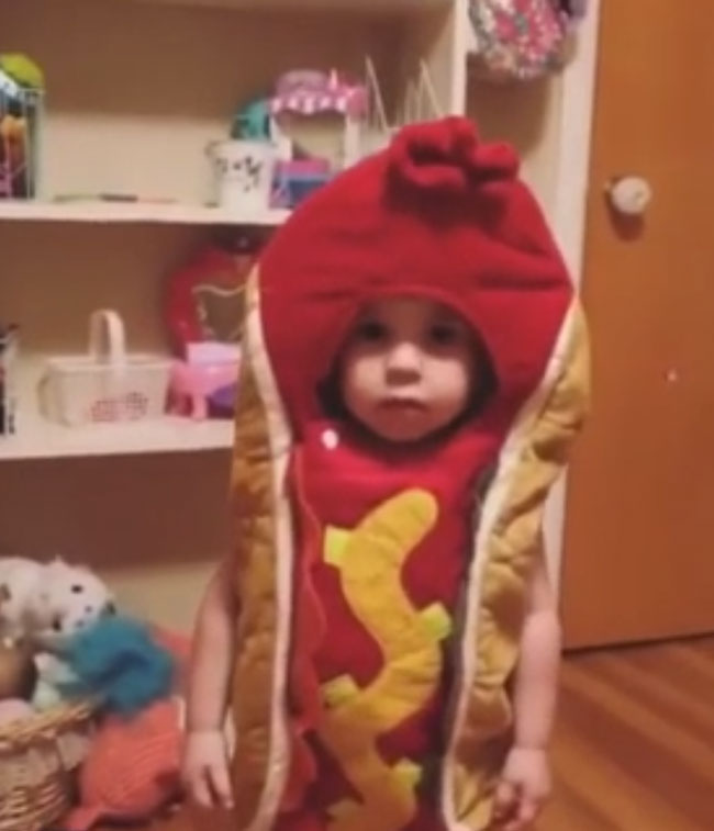 Watch the hilarious video of the 2-year-old who chose to wear a hot dog outfit