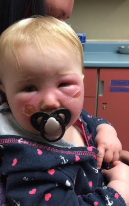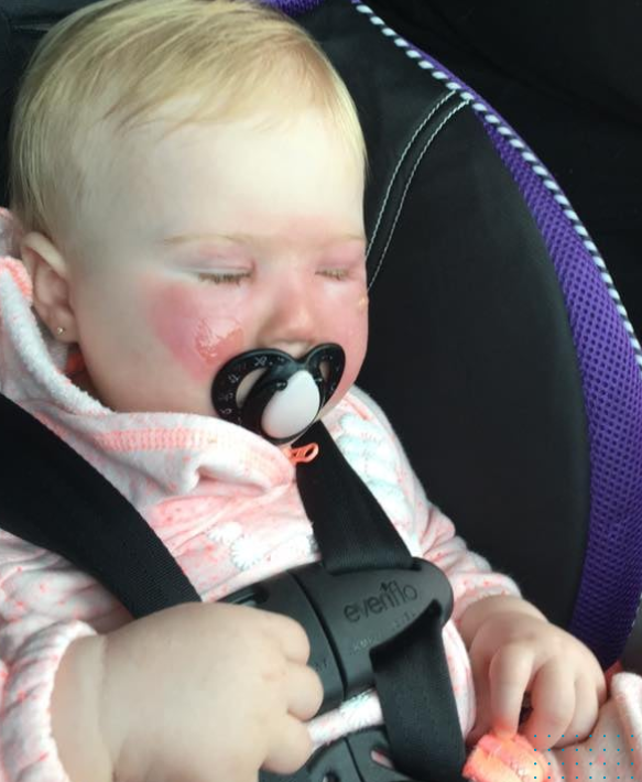She sprayed some on her hand and gently applied the blog on her daughter’s face. In about an hour, she saw that Kyla’s face started to swell. By the next morning, the baby girl had rashes and blisters on her face and she was in terrible pain.