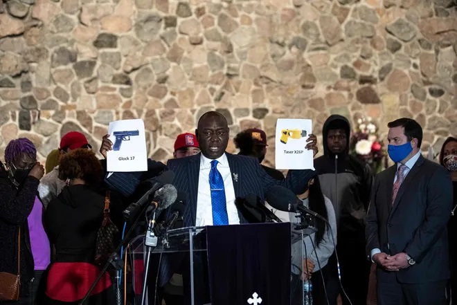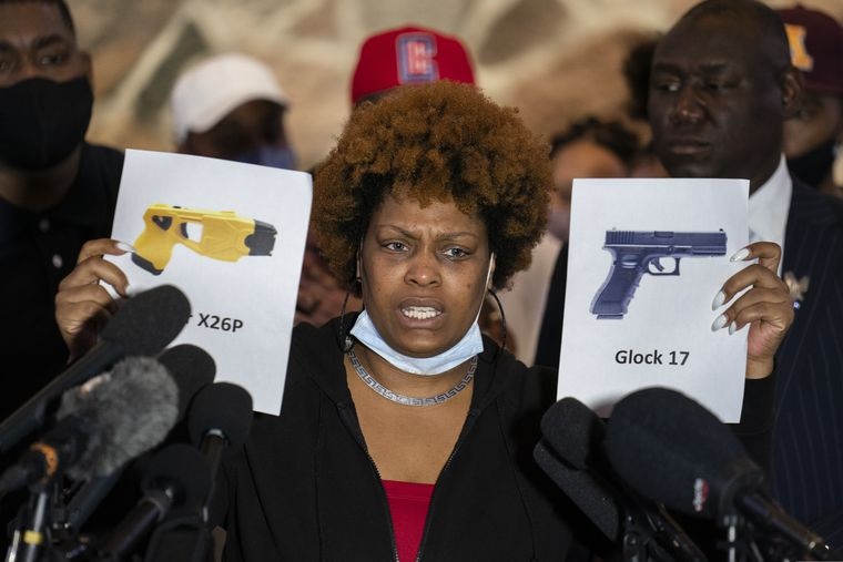 “Can we get a conviction? Can we get something? Manslaughter?” she said. Growing emotional, the aunt went on to show a photo of a taser saying “this is a taser, but no” before bringing up a photo of the handgun Potter used to kill Daunte. “My nephew was killed with this — a Glock,” she said.