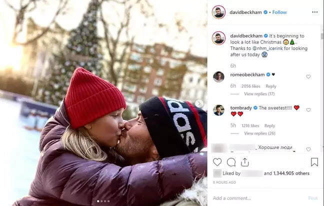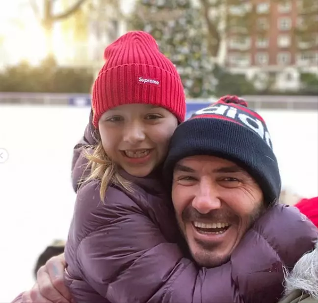 Beckham recently shared pictures on Instagram showing him kissing his 8-year-old daughter on the lips. He wrote: “It’s beginning to look a lot like Christmas… Thanks to @nhm_icerink for looking after us today.”