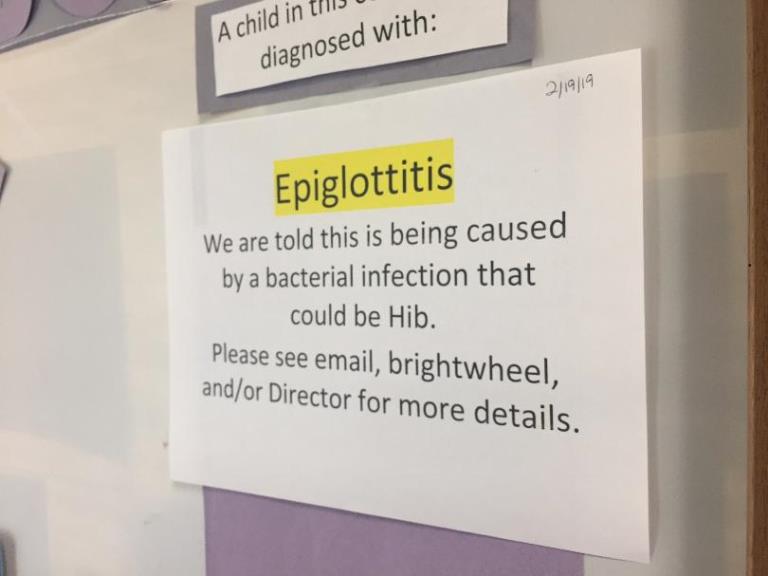 Hib vaccinations in babies have made contracting the infection rare but the daycare staff who got the epiglottitis was vaccinated.