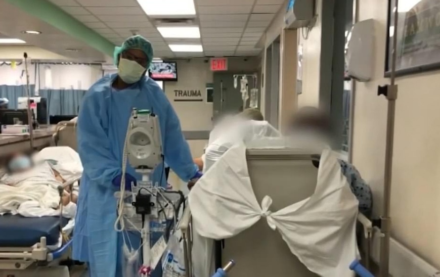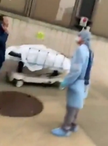 The video surfaces shortly after a nurse shared a horrifying picture of dead bodies piled in a refrigerated truck, which were taken away from another hospital.