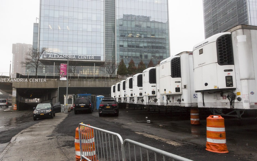 The last time fleet of makeshift morgues was deployed outside hospitals in New York City was after the 11.9.2001 terrorist attacks.